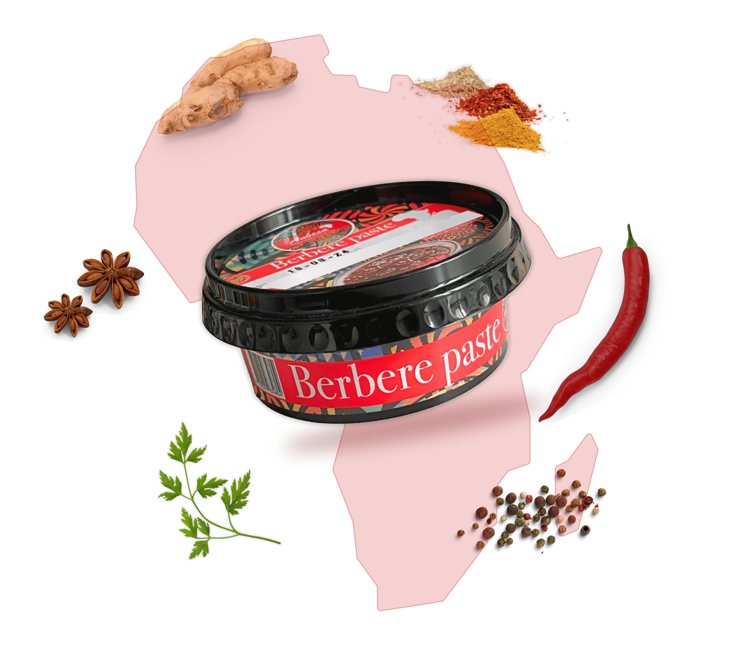 Our Berbere paste is made of Berbere from Addis Abeba, Ethiopia. The word Berbere means hot or spicy. Berbere is a traditional spice blend that is the backbone of Ethiopian and Eritrean cuisine which is used in many different dishes, including Ethiopia’s national dish, Doro Wat or Eritrean Zigni (chicken stew).